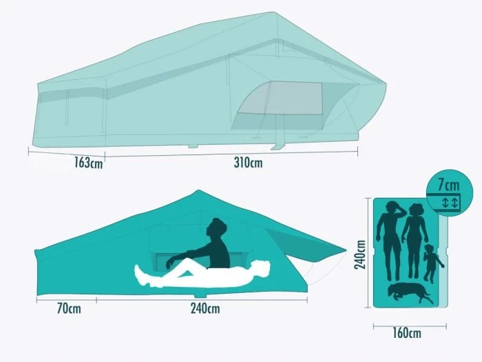L’ouverture et la fermeture de la tente se font en quelques secondes grâce Ă la structure pliable intuitive et Ă l’échelle tĂ©lescopique intĂ©grĂ©e. La conception ingĂ©nieuse permet une manipulation fluide, mĂŞme sans force physique importante.