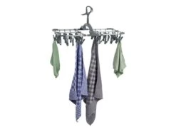 Étendoir à linge pliable extra robuste. Ce séchoir est fabriqué en aluminium et équipé d’un crochet solide pour le montage. Idéal pour frire de petites portions. Livré avec 36 pinces à linge.