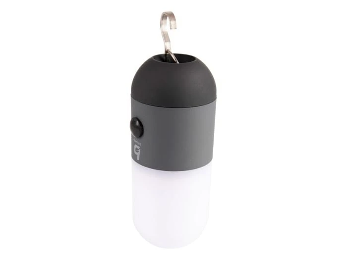 La lanterne est pourvue de LEDs d’une couleur chaude et d’un abat-jour blanc mat. La lampe est également équipée d’un boîtier en caoutchouc antidérapant pour une meilleure adhérence et d’un crochet de suspension repliable, ce qui rend la lampe utilisable aussi bien debout que suspendue.
