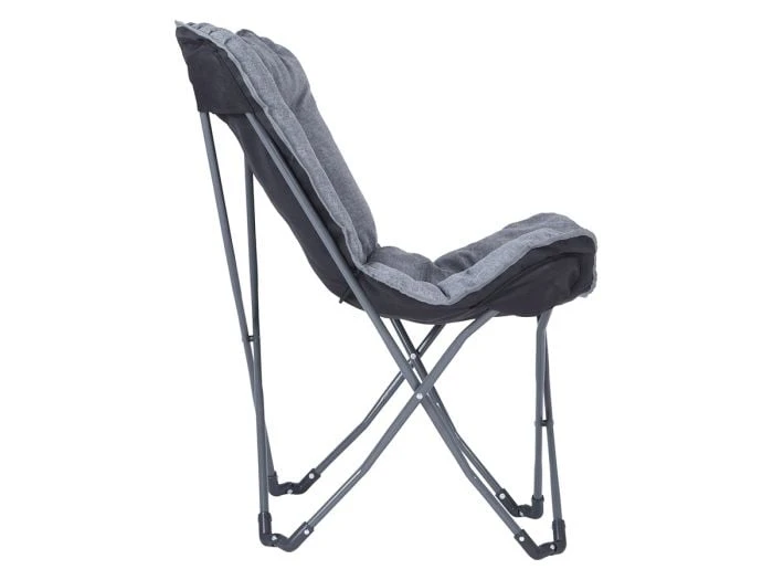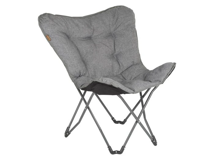 Ce joli fauteuil pliant Redbridge de Bo-Camp a une assise en forme de papillon et est super confortable car l’assise en polyester est accrochée dans un cadre en acier. L’assise a un rembourrage très épais et a un aspect lin dans un coloris gris neutre. La chaise a une assise extra large et profonde. Le cadre est en acier et est facile à plier et à déplier.