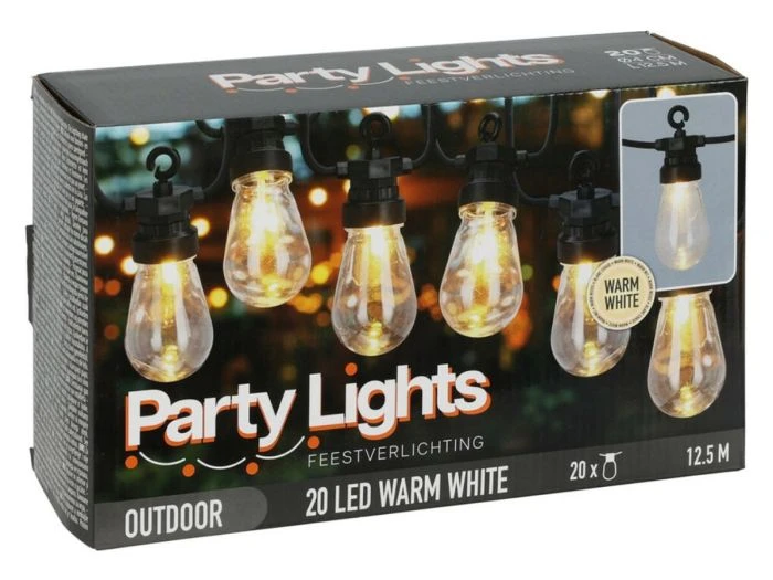 Cet éclairage de fête ressemble à un câble à broches. L’éclairage de fête fonctionne sur secteur et dispose de 20 lumières LED. Super amusant lors d’une fête dans le jardin !