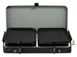 Souhaitez-vous pouvoir prĂ©parer les plats les plus dĂ©licieux au camping ? Optez pour le Cadac 2-cook 3 Pro Deluxe ! Ce rĂ©chaud est Ă©quipĂ© de deux supports de casserole stables offrant suffisamment d’espace pour deux casseroles. Une plaque de cuisson et une plaque de grill avec revĂŞtement cĂ©ramique GreenGrill sont Ă©galement fournies. Les 2 brĂ»leurs peuvent ĂŞtre utilisĂ©s indĂ©pendamment l’un de l’autre et simultanĂ©ment. Ainsi, vous pouvez cuire des pâtes pendant que vous grillez des lĂ©gumes, ou faire bouillir de l’eau tout en cuisinant des Ĺ“ufs avec du bacon.