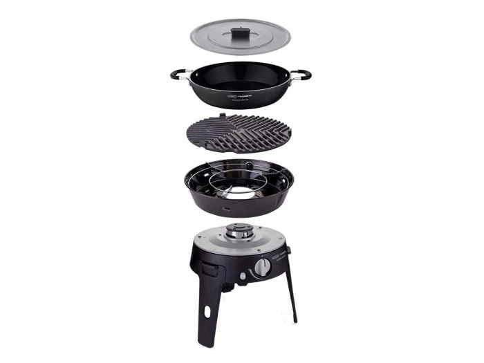 Pesant seulement 5,5 kg et doté de pieds pliables, vous pouvez facilement emporter ce barbecue léger avec vous partout. Cette version est livrée avec la populaire poêle à paella 30 avec couvercle en acier inoxydable, une grille de barbecue et un support de poêle, vous permettant de préparer d’innombrables plats.