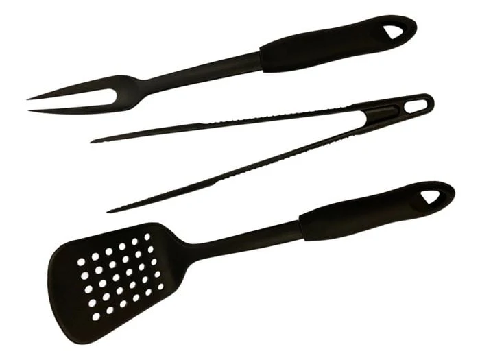Avec l’aide de la spatule, de la pince et de la fourchette, tu peux facilement prĂ©parer chaque plat sur le barbecue. Le plastique rĂ©sistant Ă la chaleur peut supporter des tempĂ©ratures allant jusqu’Ă 270 degrĂ©s.