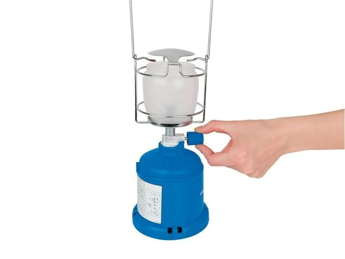 Elle fonctionne avec une cartouche de gaz C206. La lanterne est Ă©quipĂ©e d’un support de transport et de suspension. L’intensitĂ© lumineuse est rĂ©glable avec le rĂ©gulateur de puissance de 10 Ă 80 watts. Son pied large la rend très stable.