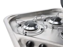 Vous recherchez une plaque de cuisson spacieuse pour votre camping-car ou caravane ? La plaque de cuisson gaz encastrable CAN FRN347 est alors le choix idéal ! La plaque de cuisson gaz est équipée de 3 brûleurs puissants, qui peuvent être utilisés séparément en continu.
