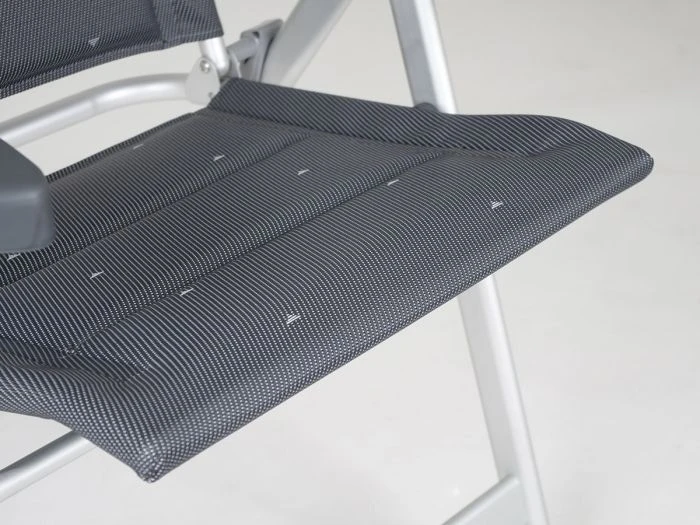 Le cadre ovale anodisé en forme de H offre une stabilité et une solidité supplémentaire. L’assise et le dossier sont équipés de textilène rembourré résistant aux intempéries et facile à nettoyer.