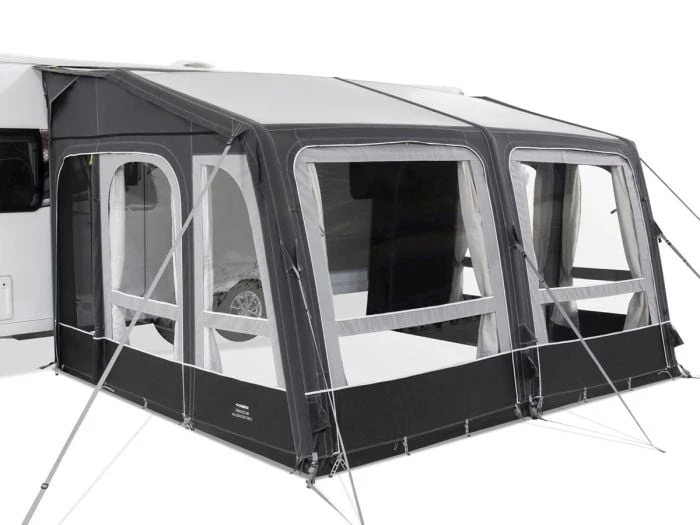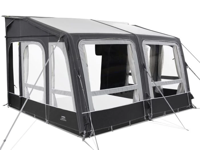 La série Grande Air de Dometic se caractérise par sa profondeur de 300 cm. Le Grande Air a donc une grande surface rectangulaire. Il y a beaucoup de place pour votre table, vos chaises et autres équipements de camping. L’armature de l’auvent entièrement gonflable rend le montage très simple.