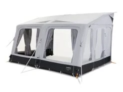 La série Rally Air de Dometic se caractérise par sa forme compacte. L’armature de l’auvent est entièrement gonflable, ce qui rend la mise en place rapide et aisée. Les tubes pneumatiques des auvents Dometic sont interconnectés. Cela veut dire qu’il y a qu’une seule valve pour gonfler l’auvent entièrement et en une seule fois. Une pompe manuelle est fournie avec l’auvent.