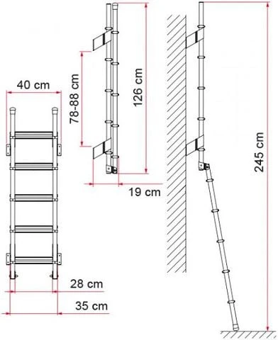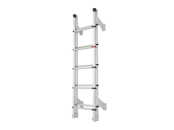 Échelle en aluminium Ă 5 marches adaptĂ©e Ă une utilisation dans le vĂ©hicule, comme pour atteindre le lit superposĂ© ou l’alcĂ´ve. Angle rĂ©glable de 15Âş pour un ajustement parfait dans la position souhaitĂ©e. ÉquipĂ© de crochets en nylon pratiques pour maintenir l’Ă©chelle en position.