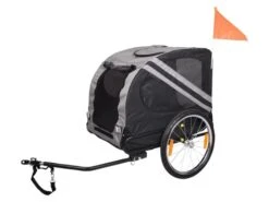 La remorque à vélo pour chiens Doggy Liner en gris-noir est parfaitement adaptée pour faire du vélo sur de longues distances avec ton chien. C’est également une bonne solution pour les chiens souffrant de problèmes articulaires, les chiens ayant une endurance limitée et les chiots. La remorque à vélo pour chiens est protégée contre les intempéries et le vent par une capote en nylon stable et déperlante. La longueur de la barre de traction pour le vélo est de 55 cm.