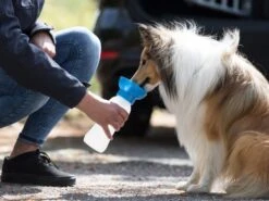 Avec la gourde Trixie avec abreuvoir, votre chien peut profiter de l’eau fraĂ®che partout.