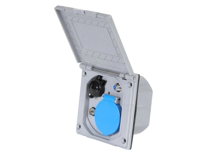 La prise de courant murale étanche ESB-3 est fournie sans câble. Cette prise de courant est disponible en différentes couleurs.