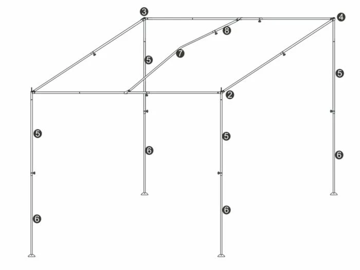 L’annexe est livrĂ©e avec une armature en acier de 22 mm et des pieds pliants. Avec les profils de couplage fournis, l’annexe peut ĂŞtre fixĂ©e aux joncs de l’auvent.