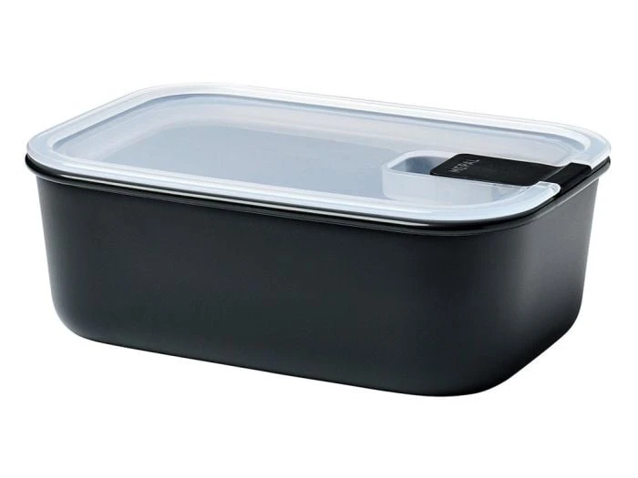 Avec un seul clic, tu fermes la boîte de conservation de manière étanche et hermétique. Grâce au couvercle transparent, tu vois en un coup d’œil ce qui se trouve dans la boîte. La boîte de conservation avec un couvercle pratique peut être utilisée dans le micro-ondes. Il suffit d’ouvrir le clip avec la valve à vapeur unique.