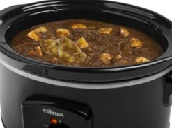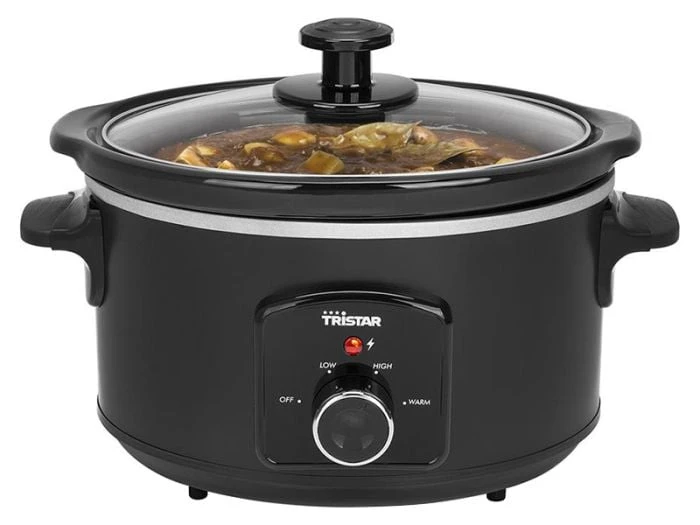 Avec la mijoteuse Tristar VS-3915, vous n’avez plus besoin de travailler avec des casseroles et des poĂŞles Ă la maison, mais vous pouvez immĂ©diatement savourer un repas chaud ! C’est possible avec la mijoteuse Tristar. Les plats sont cuits très lentement, afin que la viande reste juteuse et que les nutriments soient prĂ©servĂ©s. Grâce Ă la grande poĂŞle intĂ©rieure en cĂ©ramique de 3,5 litres, vous pouvez prĂ©parer suffisamment de hachis ou de porc effilochĂ© pour quatre personnes, mais les petites quantitĂ©s ne posent Ă©galement aucun problème. La mijoteuse dispose de deux rĂ©glages de cuisson pour que vous puissiez servir un ragoĂ»t dans les 3 heures ou mijoter des plats pendant 10 heures. La fonction de maintien au chaud garde Ă©galement tout bien au chaud afin que vous puissiez manger quand bon vous semble.