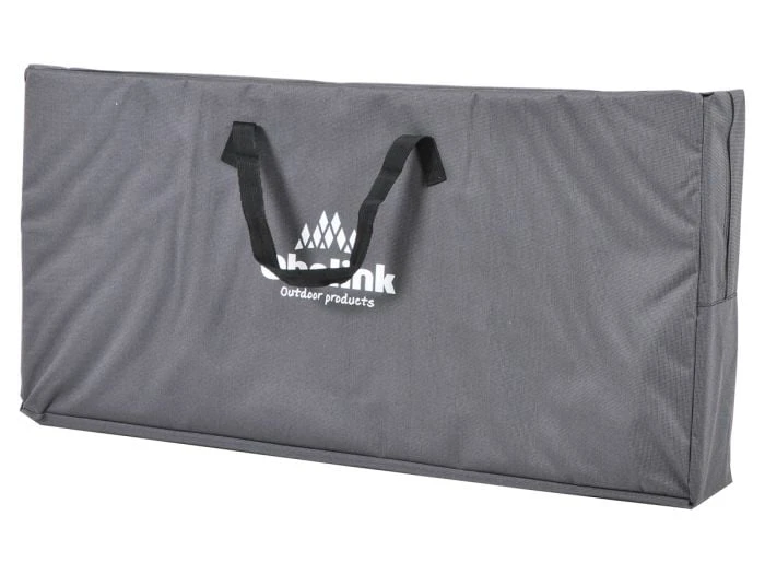 L’armoire est équipée de quatre pieds réglables afin de pouvoir niveler l’armoire à tout moment sur une surface inégale. Après utilisation, vous pouvez ranger le meuble de camping dans le sac de rangement fourni.