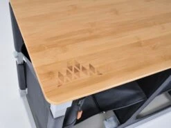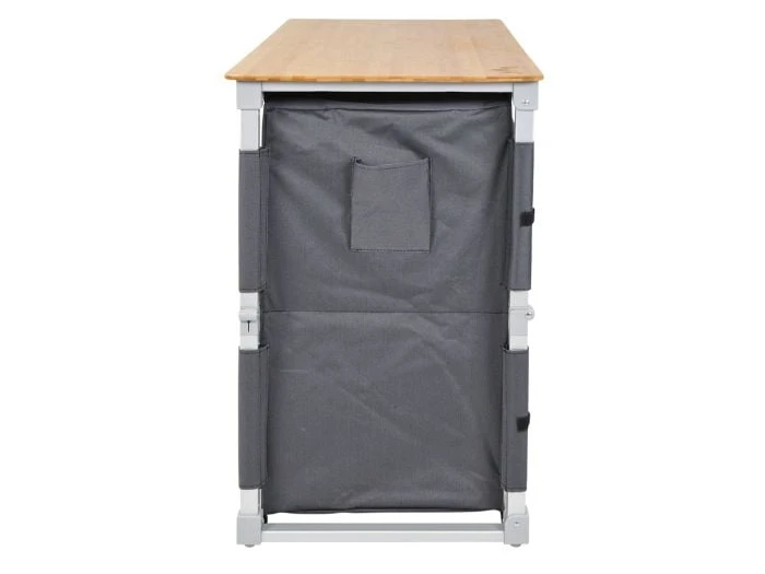 L’Obelink Bamboo Quick a quatre compartiments de rangement dans lesquels vous pouvez ranger votre équipement de camping. L’arrière est équipé de mesh afin de bien ventiler l’armoire.