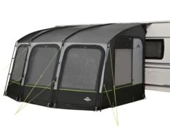Le Baroness est livré en standard avec des sardines et des cordes pour monter fermement l’auvent. La jupe appropriée et le cache-roue universel garantissent qu’aucun courant d’air ne peut pénétrer dans l’auvent par le dessous de la caravane. Le tapis de sol en PE fourni s’adapte parfaitement à l’auvent grâce à sa forme trapèze. Repliez les bavettes de l’auvent sous le tapis de sol pour créer un joint étanche et empêcher autant que possible les courants d’air, le vent et la pluie de pénétrer dans l’auvent.