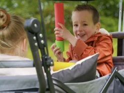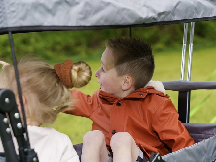 Parfois, une promenade est trop loin pour les jeunes enfants. Afin de passer une belle journĂ©e, vous pouvez utiliser ce chariot de transport Duo Solar. mĂŞme si il pleut ou si le soleil tape fort, vous pouvez sortir. Grâce au toit solaire de ce chariot, les enfants sont assis au sec et Ă l’abri du soleil.