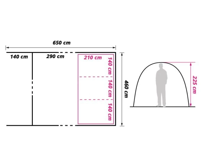 L’auvent solaire Ă l’avant est Ă©quipĂ© de deux grandes fenĂŞtres qui, comme les fenĂŞtres de la tente, peuvent ĂŞtre entièrement couvertes de l’intĂ©rieur par des volets. Pour un confort supplĂ©mentaire, un panneau avant optionnel est disponible. Le panneau avant se compose d’un mur plein et d’un panneau en maille. Ainsi, vous ĂŞtes protĂ©gĂ© contre les insectes les jours chauds et lors des journĂ©es plus froides ou humides, vous pouvez intĂ©grer l’auvent Ă l’espace de vie.