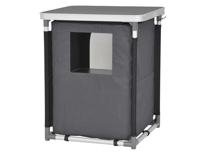 Il vous manque un espace de rangement supplémentaire, mais vous n’avez pas la place pour une grande armoire ? Optez alors pour l’armoire Liverpool Luxe de Obelink. Pour cette armoire de camping compacte, il y a toujours de la place dans votre tente ou auvent. L’armoire mesure 60 x 52 x 72 cm et est pourvue de 2 étagères que vous pouvez fermer avec une fermeture éclair. L’arrière est équipé d’un filet qui assure une bonne ventilation de l’armoire. Sur le côté, il y a deux compartiments de rangement supplémentaires et un certain nombre de crochets où vous pouvez accrocher un gilet ou un essuie-mains.