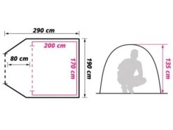 Le tapis de sol avec rebord surélevé empêche la pluie d’entrer dans la tente afin de garder vos pieds et affaires au sec. L’arceau de tente avant est courbé dans le faîte, ce qui crée plus de hauteur dans l’entrée afin d’accéder plus facilement dans la tente.