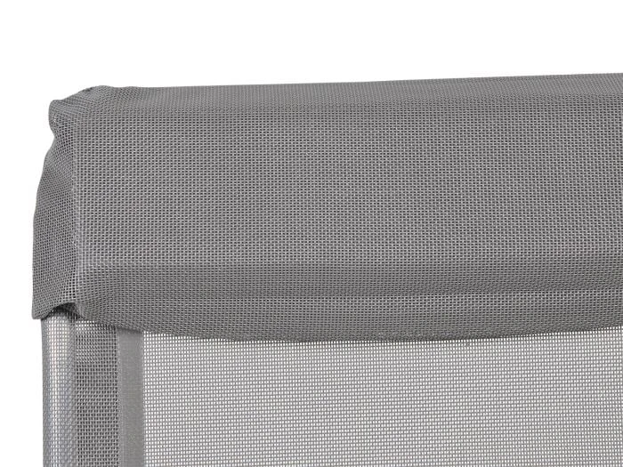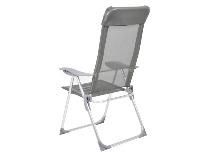 Le dossier est inclinable dans 5 positions différentes et est pourvu d’un repose-tête confortable. Après utilisation, le fauteuil se replie à plat et ne pèse que 3,5 kg, ce qui est idéal pour l’emporter avec soi au camping.