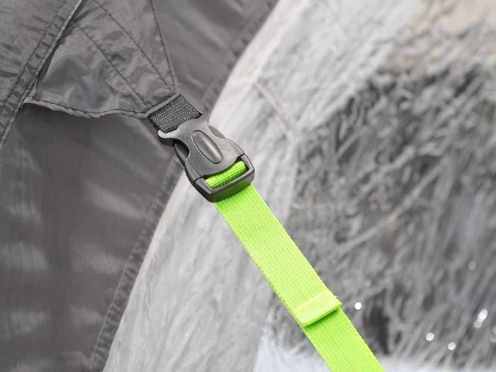 Le Palma 280 Easy Air est également doté de sangles fluorescentes à l’intérieur, permettant d’attacher une barre de penderie (non incluse), et de bandes velcro sur les chambres à air pour ranger les câbles électriques ou accrocher une guirlande lumineuse.