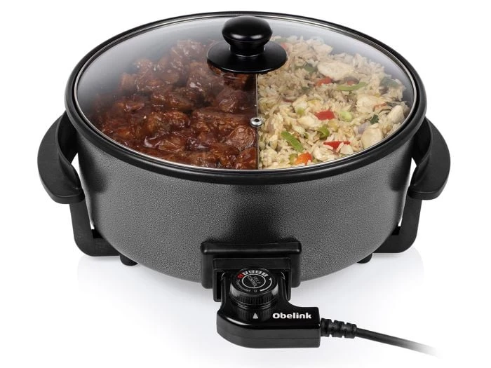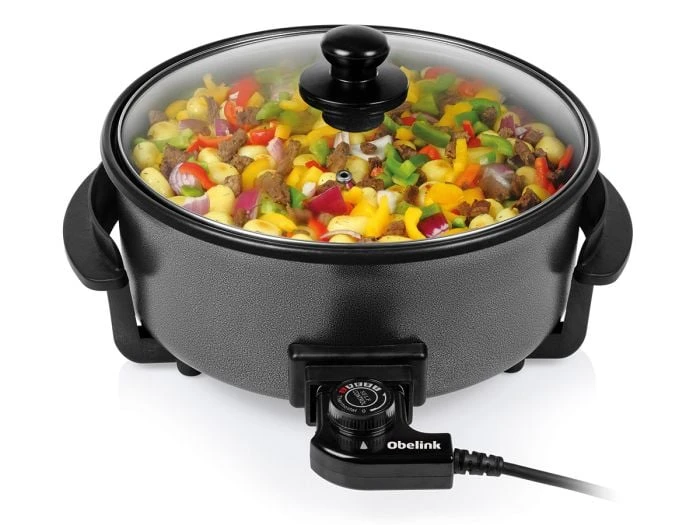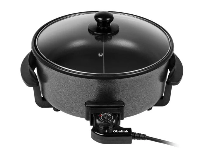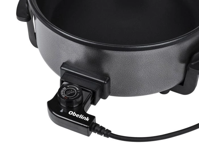La poĂȘle Obelink PD-3818 est Ă©quipĂ©e de poignĂ©es Cool Touch, de pieds antidĂ©rapants et d’un cordon amovible avec thermostat, ce qui la rend trĂšs pratique Ă utiliser. Le revĂȘtement antiadhĂ©sif empĂȘche les aliments de coller et facilite le nettoyage.