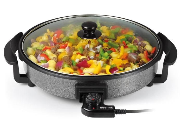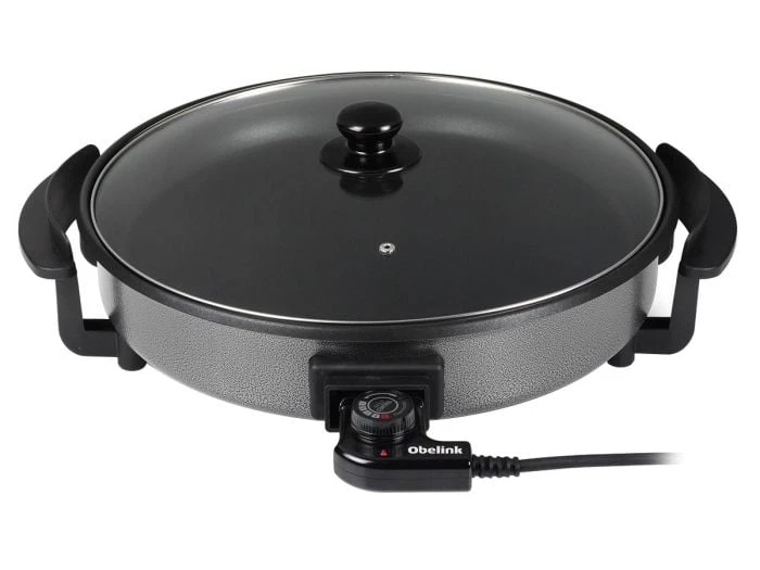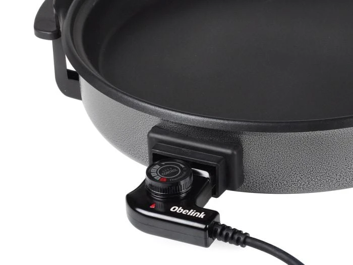 La poĂȘle Obelink PD-3819 est Ă©quipĂ©e de poignĂ©es Cool Touch, de pieds antidĂ©rapants et d’un cordon amovible avec thermostat, la rendant trĂšs pratique Ă utiliser. Son revĂȘtement antiadhĂ©sif empĂȘche les aliments de coller et facilite le nettoyage.