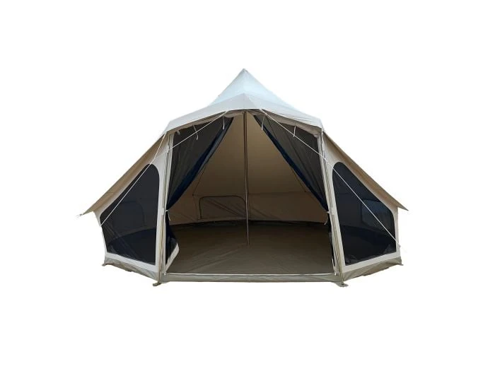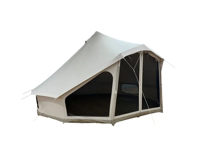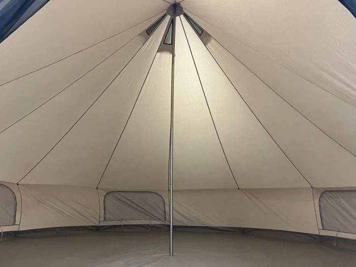 La tente tipi Obelink Sahara 500 High Door Bell offre de la place pour deux Ă trois personnes, avec beaucoup d’espace de vie restant. Un grand matelas pneumatique double se glisse facilement derrière le poteau central. Avec des matelas pneumatiques ou des matelas plus petits, il y a de la place pour un maximum de 8 personnes.