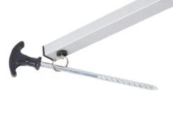 Ce sĂ©choir est un modèle Ă 4 bras avec pied. Vous pouvez donc le placer oĂą vous le souhaitez. Et grâce aux 3 sardines fournies, vous pouvez fixer le sĂ©choir au sol. Un peu de vent n’est donc pas un problème !