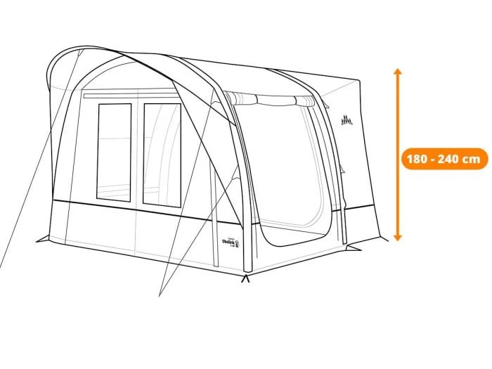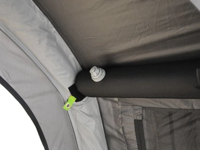 L’Obelink Vacation Easy Air est pourvu de tubes pneumatiques gonflables. Les valves sont accessibles depuis l’extérieur de l’auvent. Trois barres transversales gonflables pour le toit sont fournis, ce qui vous permet de tendre d’avantage le toit pour qu’il y ait un bon drainage et que l’auvent soit très stable. La pompe manuelle est également fournie !