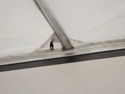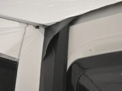 Pour une bonne liaison avec la paroi de la caravane, les parois latérales sont équipées de coussins en mousse à l’arrière. Vous pouvez les fixer facilement sur la partie inférieure à l’aide des sardines fournies afin que le coussin en mousse s’adapte parfaitement à la paroi.