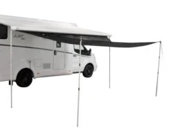 La toile d’ombrage peut ĂŞtre utilisĂ©e de diffĂ©rentes manières. Elle est Ă©quipĂ©e de joncs de 5 mm et 7 mm. Tu peux l’utiliser directement dans le rail de la caravane avec le jonc de 7 mm, ou la faire glisser dans le rail de ton store Ă sac ou cassette avec le jonc de 5 mm. Il est Ă©galement possible de la fixer Ă une tente d’auvent Ă l’aide de bandes de raccordement (vendues sĂ©parĂ©ment).