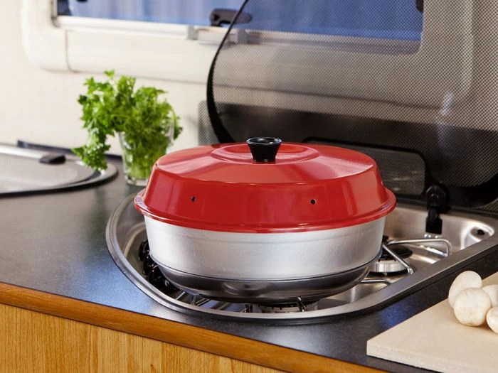 Le four de camping Omnia est un petit four très pratique qui vous permet de cuire des aliments sur un réchaud gaz, un brûleur à alcool, une plaque électrique ou tout autre type de plaque de cuisson sans utiliser un four coûteux et encombrant.