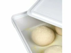 Chaque boîte de rangement offre de la place pour six boules de pâte de 250 grammes, parfaites pour des pizzas de 30 cm. Les couvercles garantissent que la pâte ne sèche pas, tandis que la couleur blanche minimise l’absorption de chaleur. Grâce aux parois intérieures lisses et coniques et à la conception empilable, les caisses s’emboîtent efficacement pour un rangement compact. Cet ensemble peut également être parfaitement combiné avec la planche de préparation à pizza Ooni. Celui-ci s’adapte parfaitement comme couvercle sur les boîtes de rangement, offrant un espace de travail précieux pour préparer, étirer, garnir et couper vos pizzas. Les boîtes de conservation Ooni garantissent que votre pâte lève parfaitement sans se dessécher, afin que vous puissiez toujours réaliser la pizza parfaite ! Dimensions : 32,2 x 42,3 x 18,1 cm.