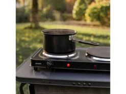 Le poĂȘle Mestic MKT-200 peut ĂȘtre utilisĂ© comme plaque de cuisson au camping ou Ă la maison.