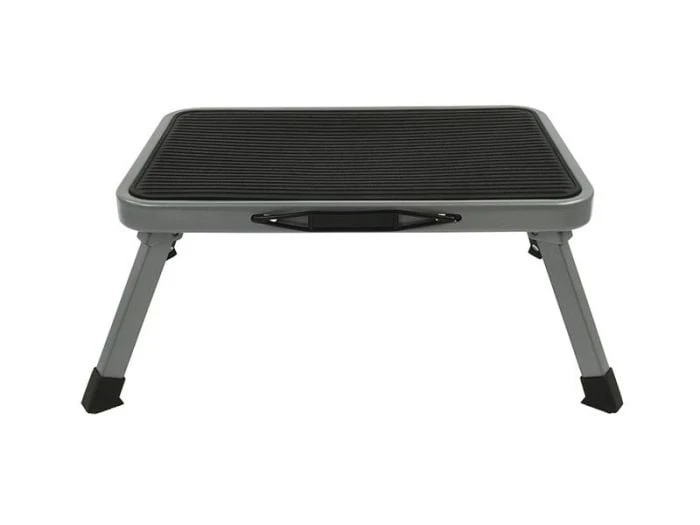 Le marche-pied pliable est Ă©galement pratique pour une utilisation Ă la maison, dans un entrepĂ´t, etc. Ce marche-pied est fait de pieds en acier solides et est muni d’un tapis antidĂ©rapant sur la marche. Le marche-pied convient pour un poids maximum de 150 kg.