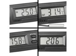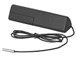 Ce thermomètre a un bouton pour la température intérieure ou extérieure et est facile à fixer avec du ruban adhésif double face. Le thermomètre a une sonde de température extérieure qui peut mesurer de -50 °C à +70 °C. À l’intérieur, le thermomètre peut mesurer de de -10 °C à +50 °C.