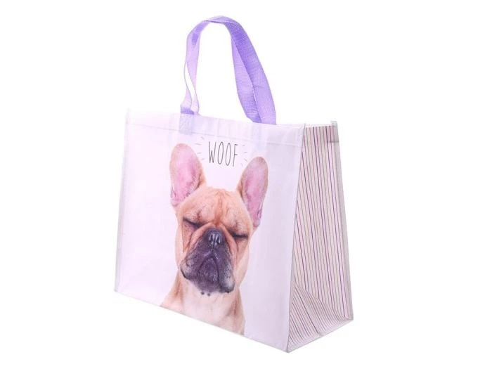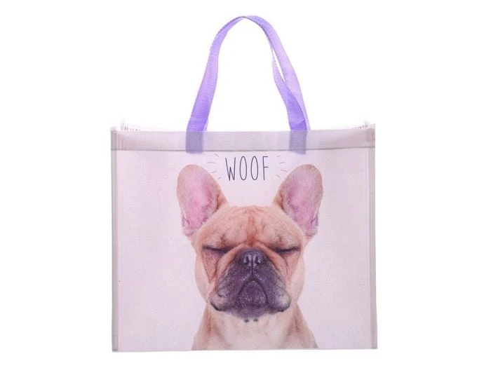 Le sac shopping WOOF French Bulldog est un sac spacieux avec une jolie image de bouledogue français.