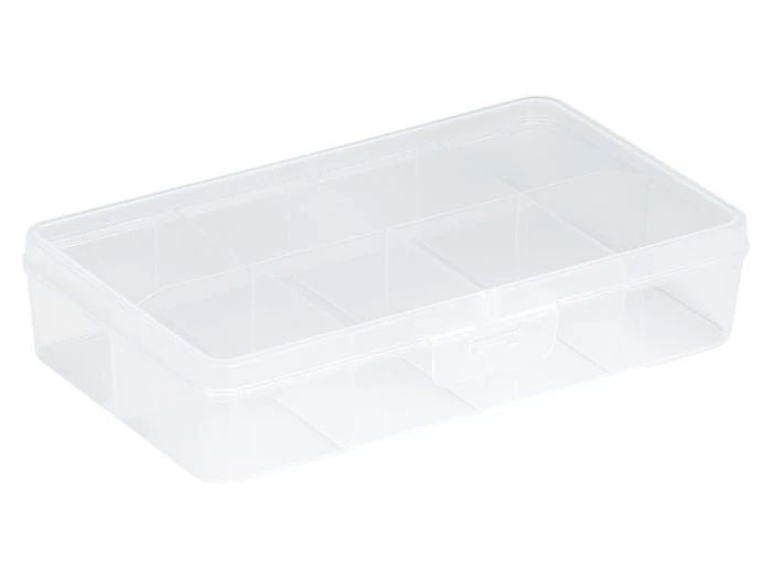 La boĂ®te Q-line de Sunware – 8 poches Ă compartiments fixes dans lesquels vous pouvez stocker vos petits objets. Cette boĂ®te est transparente, vous permettant de voir en un coup d’œil ce qu’elle contient. De plus, elle est facile a fermer et elle se ferme correctement avec la fermeture robuste fixĂ©e Ă la boĂ®te.