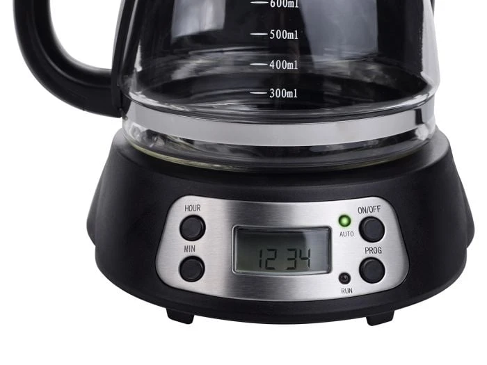 La cafetière est pourvue d’un dispositif anti-goutte, qui vous permet de retirer la verseuse en verre de la cafetière sans goutter. La cafetière est équipée d’un arrêt automatique, elle garde le café chaud pendant 40 minutes et s’éteint ensuite automatiquement.