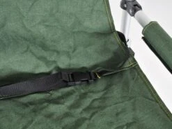 Le cadre de la chaise est en aluminium léger et le revêtement est en polyester 600D. Tu peux facilement retirer le revêtement pour le laver. La capacité de charge maximale de la chaise est de 50 kg. La chaise se plie de manière compacte et est facile à transporter grâce au sac de transport fourni.
