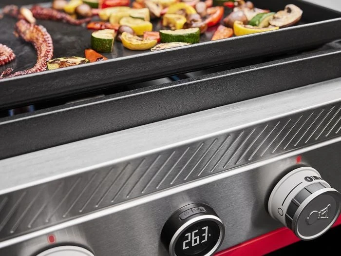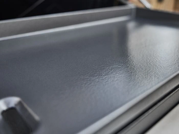 Le Weber 76 cm Plancha peut atteindre une tempĂ©rature de 330 °C et chauffe la plaque de manière uniforme d’un bord Ă l’autre, assurant une cuisson Ă©gale, oĂą que l’aliment soit placĂ© sur la plaque. La Plancha dispose de 3 brĂ»leurs qui sont rĂ©glables sĂ©parĂ©ment, permettant de cuisiner Ă 3 diffĂ©rentes tempĂ©ratures en mĂŞme temps. La plaque de cuisson Ă©maillĂ©e en porcelaine antiadhĂ©sive facilite le retournement des hamburgers ou la grillade des lĂ©gumes. AdaptĂ©e aux ustensiles mĂ©talliques, tu peux utiliser une grande spatule sans inquiĂ©tude.